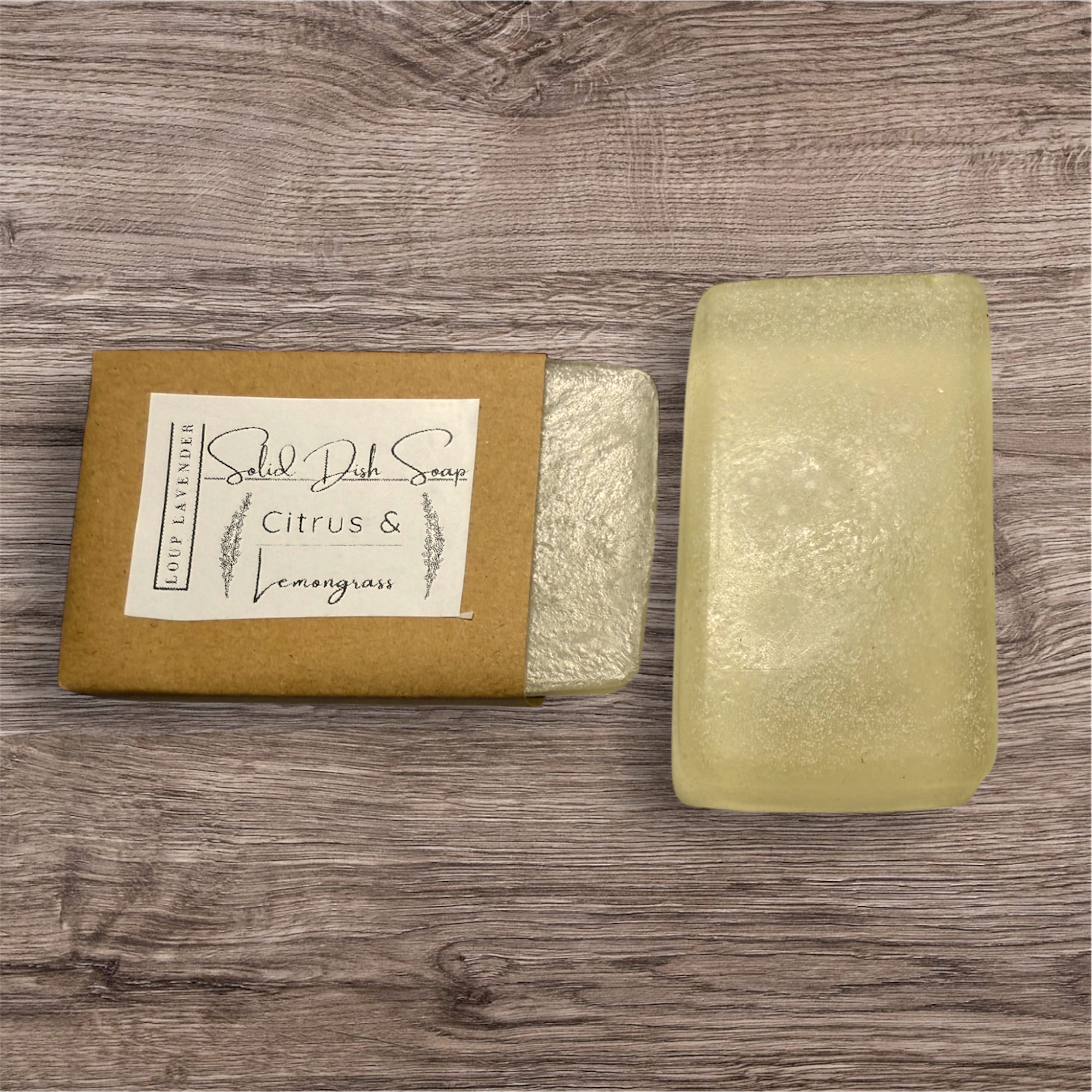A solid, long-lasting bar that effectively cleans dishes, leaves a refreshing citrus and lemongrass scent, and keeps your hands and kitchen feeling naturally fresh and clean.