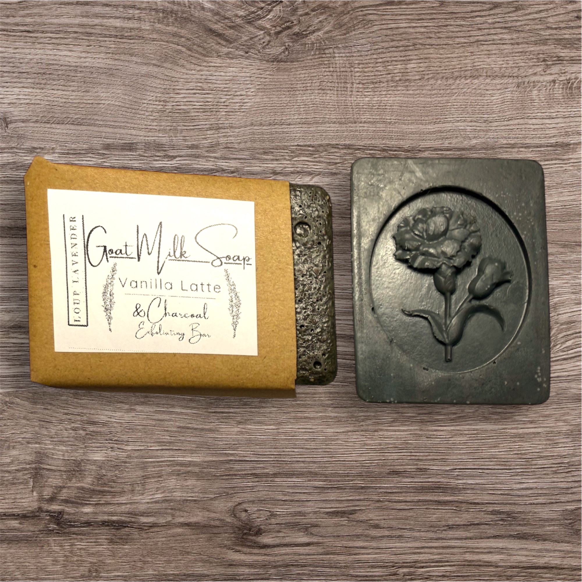 Wake up your skin with our Handmade Vanilla Latte & Charcoal Exfoliating Goat Milk Soap. Crafted in small batches, each bar blends rich, creamy goat milk with the warm aroma of vanilla essential oil, energizing coffee grounds, and deeply cleansing activated charcoal. Together, these ingredients create a luxurious lather that gently exfoliates, purifies, and revitalizes the skin.